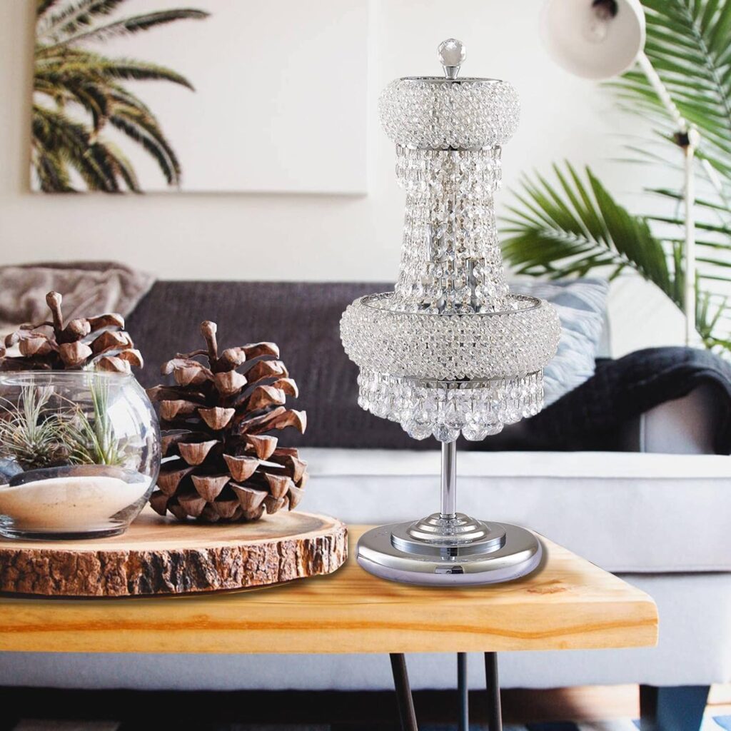 - This crystal table light fixture could light up your room to create a superior and classy atmosphere in your living room, dining room, bedroom, foyer, or any other dry place.