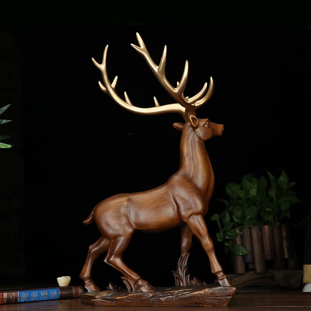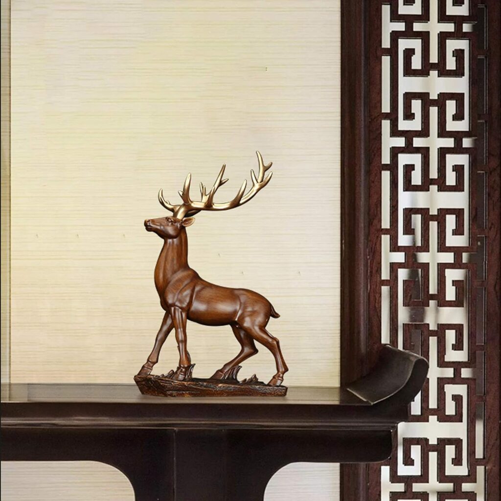 Desktop Decoration Feng Shui Lucky Deer Statue Decoration Home Furnishing Modern Simple Light Luxury Creative Resin Sculpture Deer TV Cabinet Deer Ornament Home Office Decor