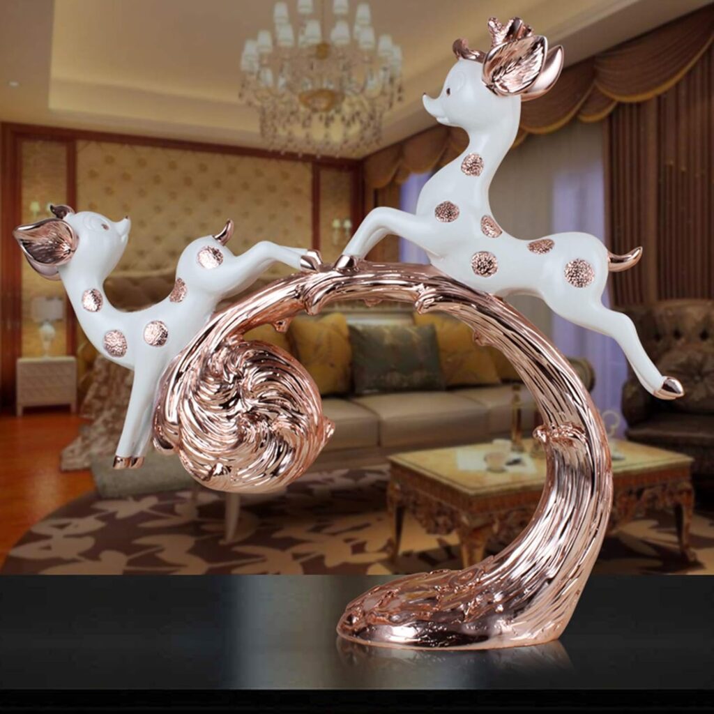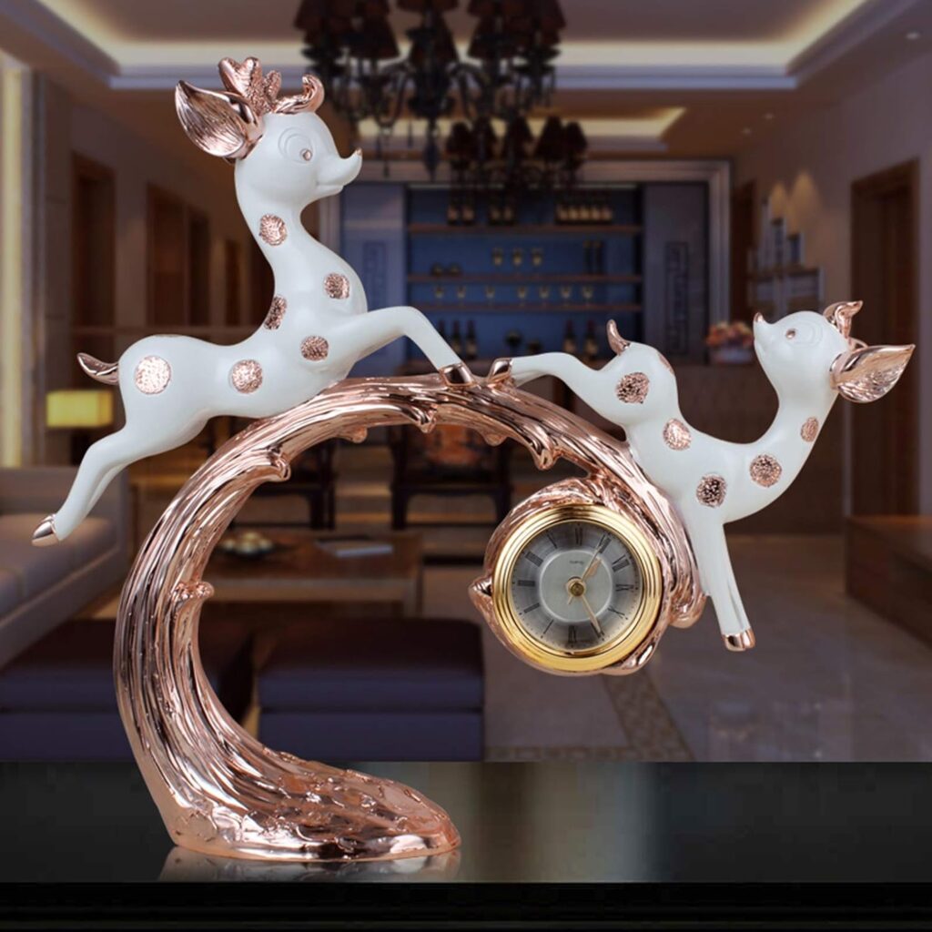 Feng Shui Ornaments Modern Wedding Gift Light Luxury Creative Home Deer Statue Decoration Deer Clock Furnishing Wine Cabinet bar Living Room TV Cabinet furnishings Creative Figurine Sculptures