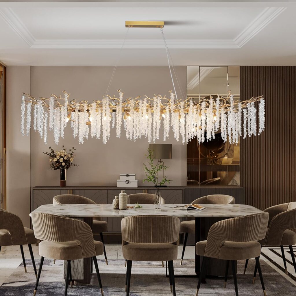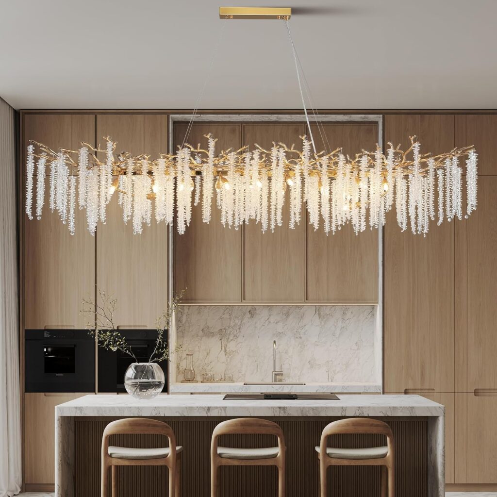 8 reviews for Gold Crystal Chandelier, Modern 70.8″ Rectangular Chandeliers for Dining Room,K9 Large Luxury Flush Mount Chandelier for Foyer Living Room,Kitchen Island Hanging Light Fixture