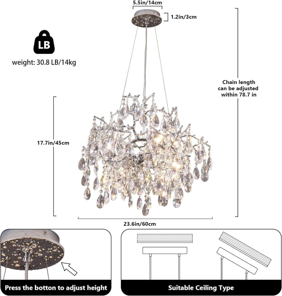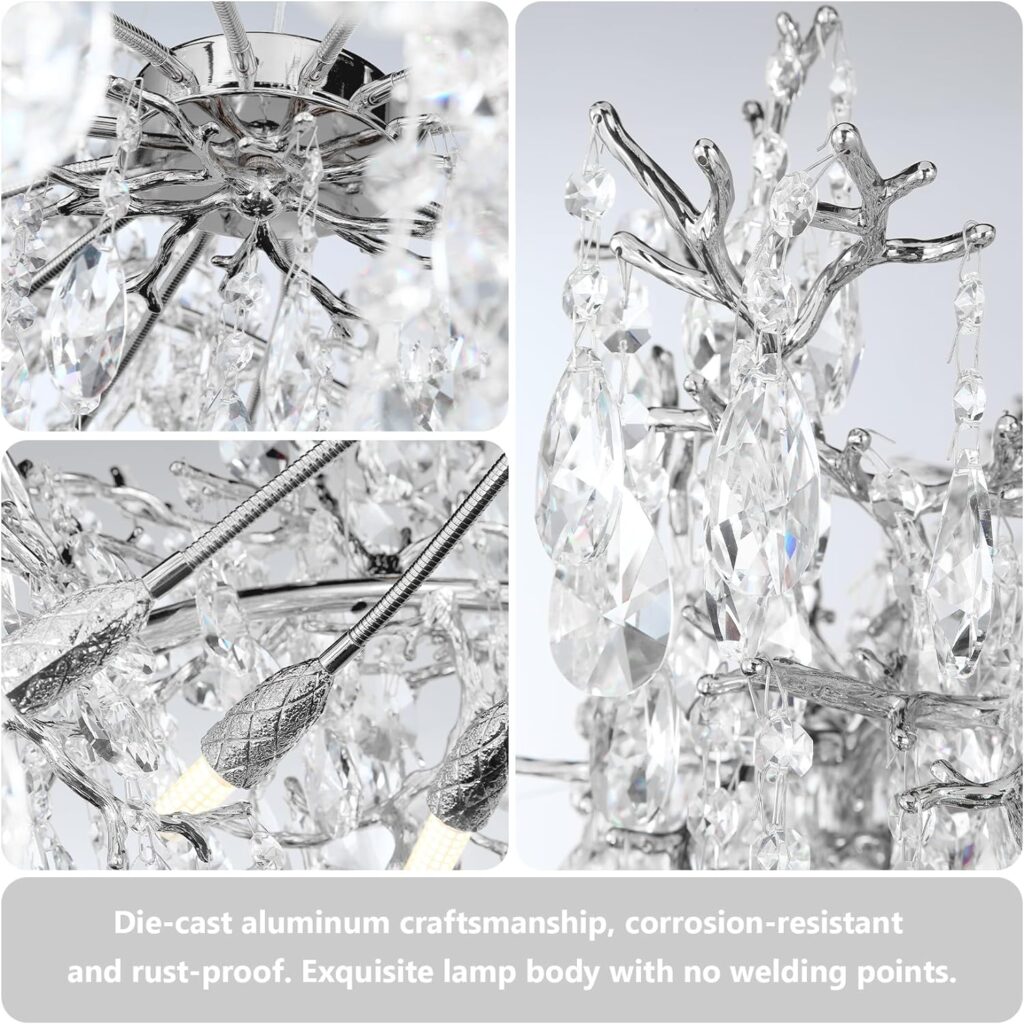 - 【CRYSTAL CHANDELIERS FOR DINING ROOM】This luxurious crystal chandelier resembles a sparkling ice tree adorned with shimmering crystal leaves, capable of illuminating and warming your entire house. It can be used as a dining room chandelier, living room chandelier, kitchen island light, bedroom ceiling light, or for any other space. It serves not only as a source of lighting but also as a luxurious and beautiful decorative piece.