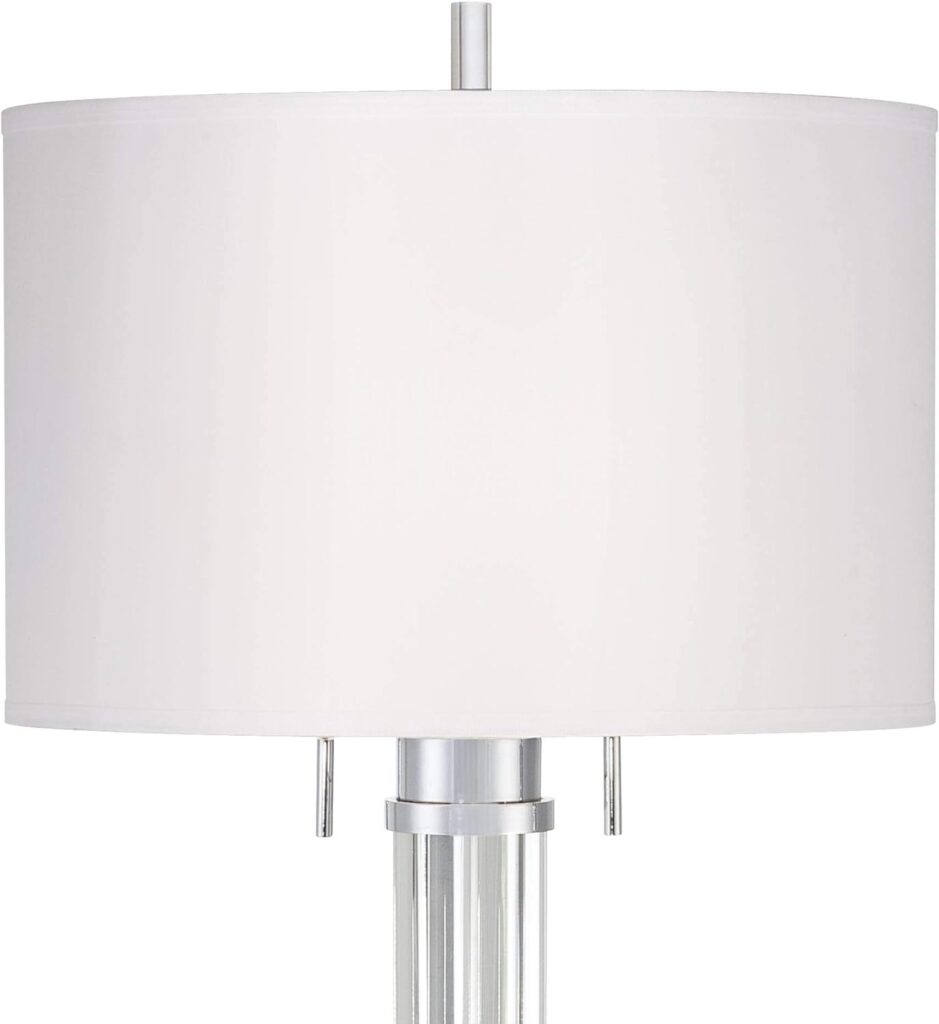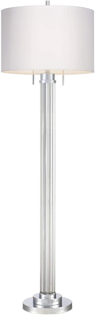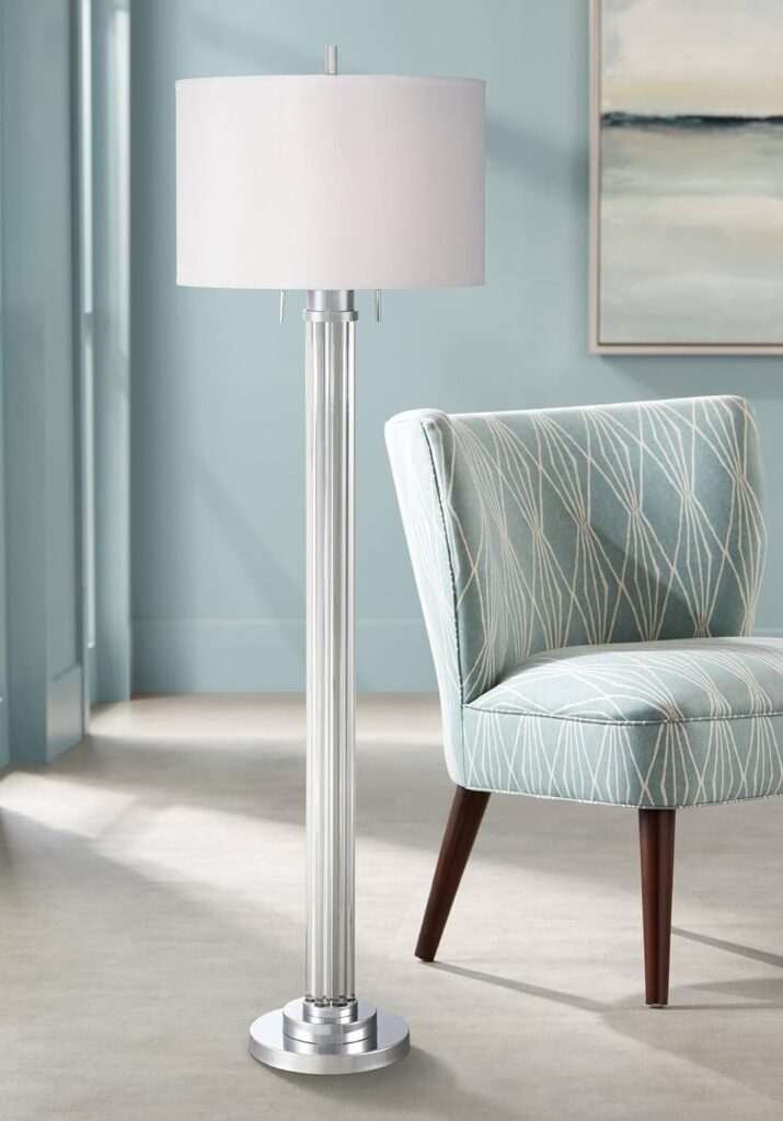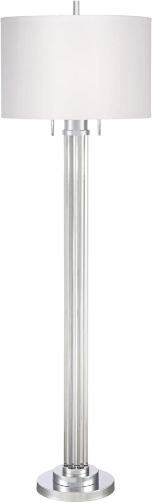 Possini Euro Design Cadence Modern Glam Style Floor Lamp Art Deco 62″ Tall Brushed Nickel Crystal Glass Standing Column Linen Fabric Drum Shade for Living Room Reading House Bedroom