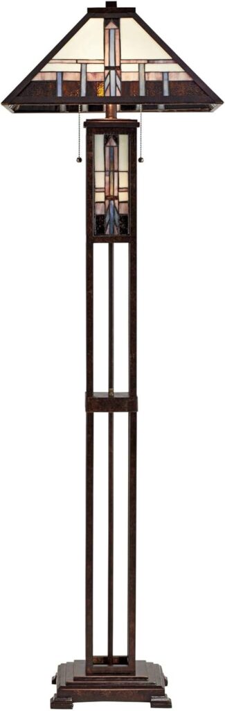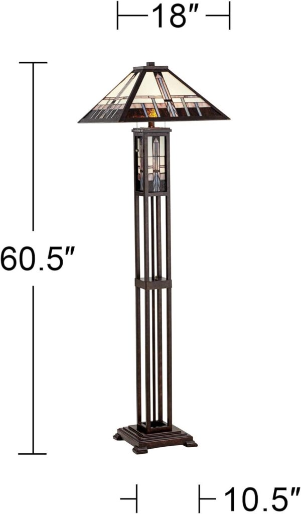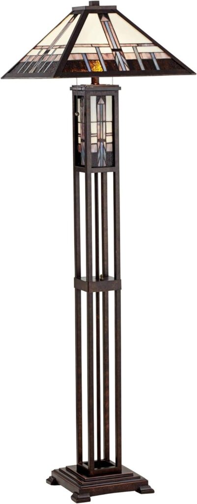 Robert Louis Tiffany Mission Southwest Tiffany Style Standing Floor Lamp with Night Light Art Deco 60.5″ Tall Oiled Bronze Copper Stained Glass Shade Decor for Living Room Reading House Bedroom